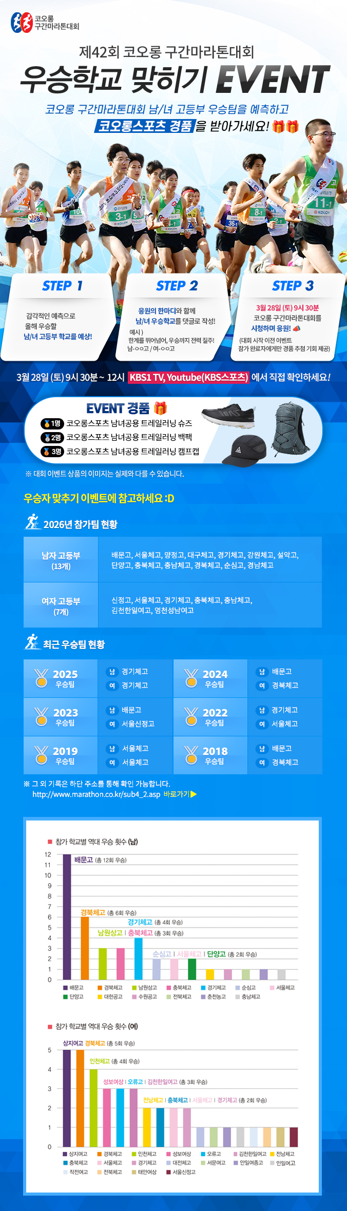 제42회 코오롱 구간마라톤 대회 우승학교 맞히기